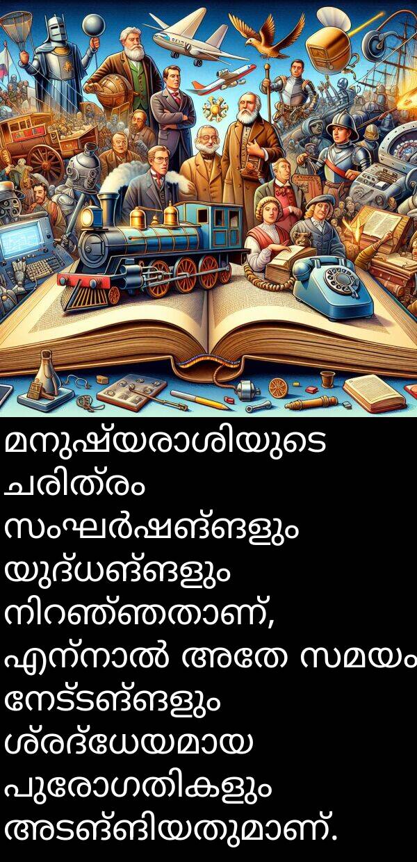 മനുഷ്യരാശിയുടെ ചരിത്രം സംഘർഷങ്ങളും യുദ്ധങ്ങളും നിറഞ്ഞതാണ്, എന്നാൽ അതേ സമയം നേട്ടങ്ങളും ശ്രദ്ധേയമായ പുരോഗതികളും അടങ്ങിയതുമാണ്.