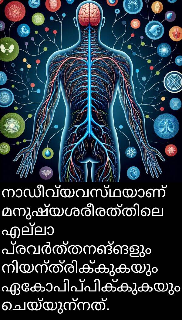 നാഡീവ്യവസ്ഥയാണ് മനുഷ്യശരീരത്തിലെ എല്ലാ പ്രവർത്തനങ്ങളും നിയന്ത്രിക്കുകയും ഏകോപിപ്പിക്കുകയും ചെയ്യുന്നത്.