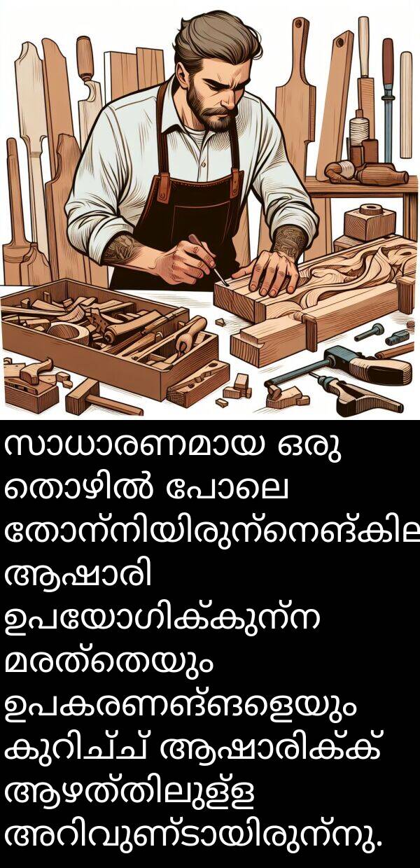 സാധാരണമായ ഒരു തൊഴിൽ പോലെ തോന്നിയിരുന്നെങ്കിലും, ആഷാരി ഉപയോഗിക്കുന്ന മരത്തെയും ഉപകരണങ്ങളെയും കുറിച്ച് ആഷാരിക്ക് ആഴത്തിലുള്ള അറിവുണ്ടായിരുന്നു.