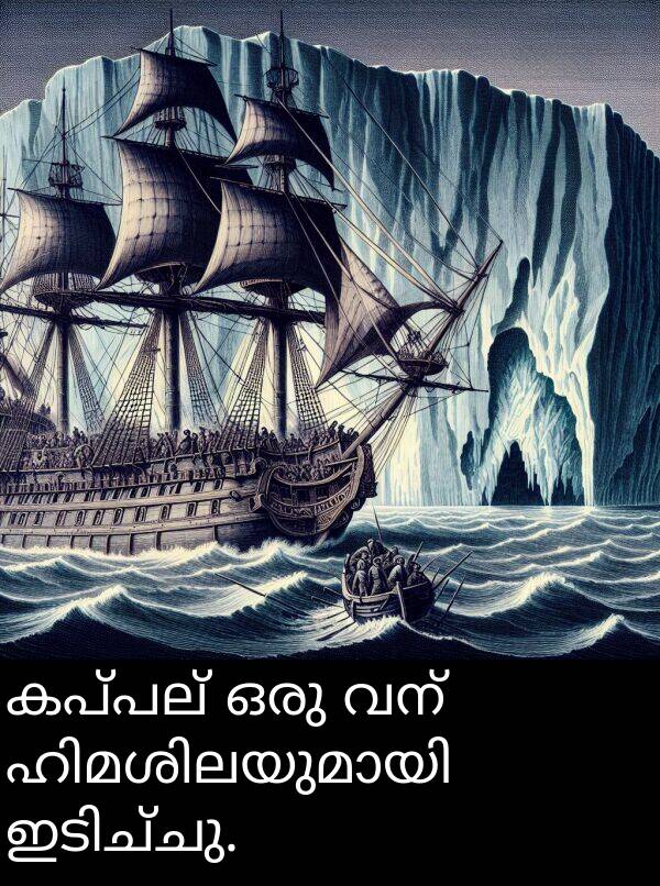 കപ്പല് ഒരു വന് ഹിമശിലയുമായി ഇടിച്ചു.