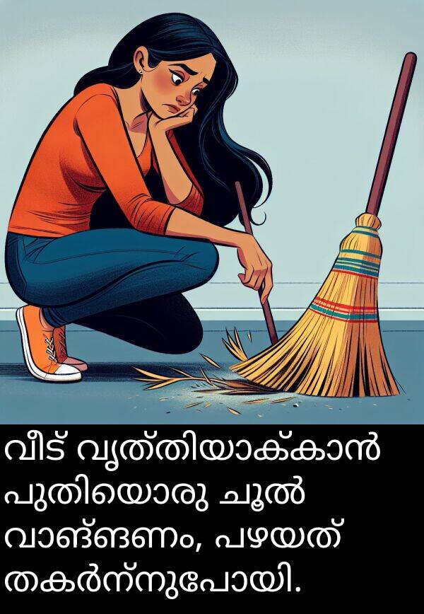 വീട് വൃത്തിയാക്കാൻ പുതിയൊരു ചൂൽ വാങ്ങണം, പഴയത് തകർന്നുപോയി.