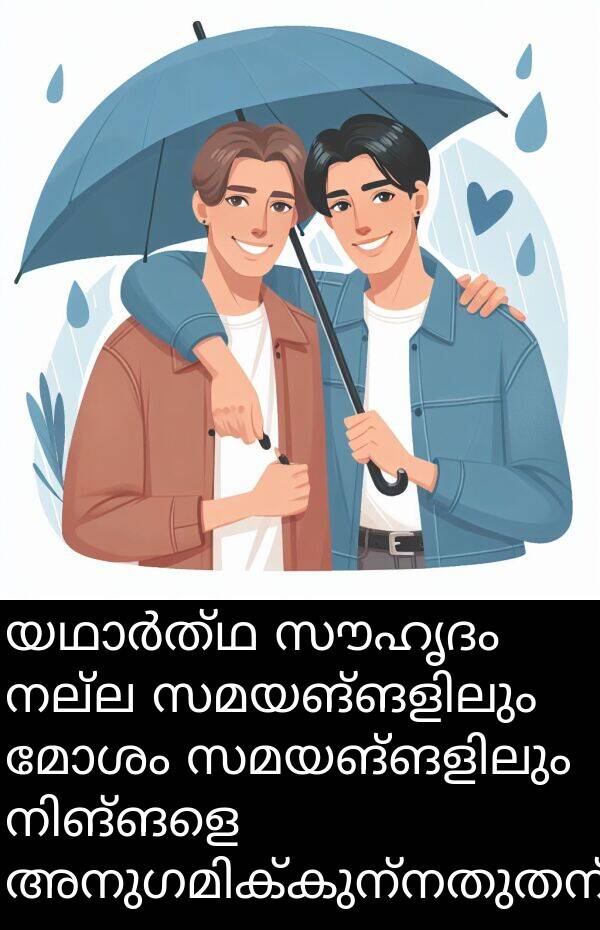 യഥാർത്ഥ സൗഹൃദം നല്ല സമയങ്ങളിലും മോശം സമയങ്ങളിലും നിങ്ങളെ അനുഗമിക്കുന്നതുതന്നെയാണ്.