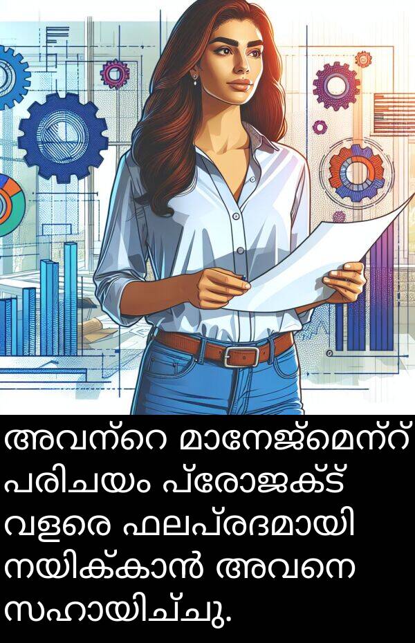 അവന്റെ മാനേജ്മെന്റ് പരിചയം പ്രോജക്ട് വളരെ ഫലപ്രദമായി നയിക്കാൻ അവനെ സഹായിച്ചു.