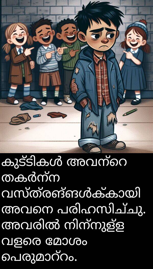 കുട്ടികൾ അവന്റെ തകർന്ന വസ്ത്രങ്ങൾക്കായി അവനെ പരിഹസിച്ചു. അവരിൽ നിന്നുള്ള വളരെ മോശം പെരുമാറ്റം.