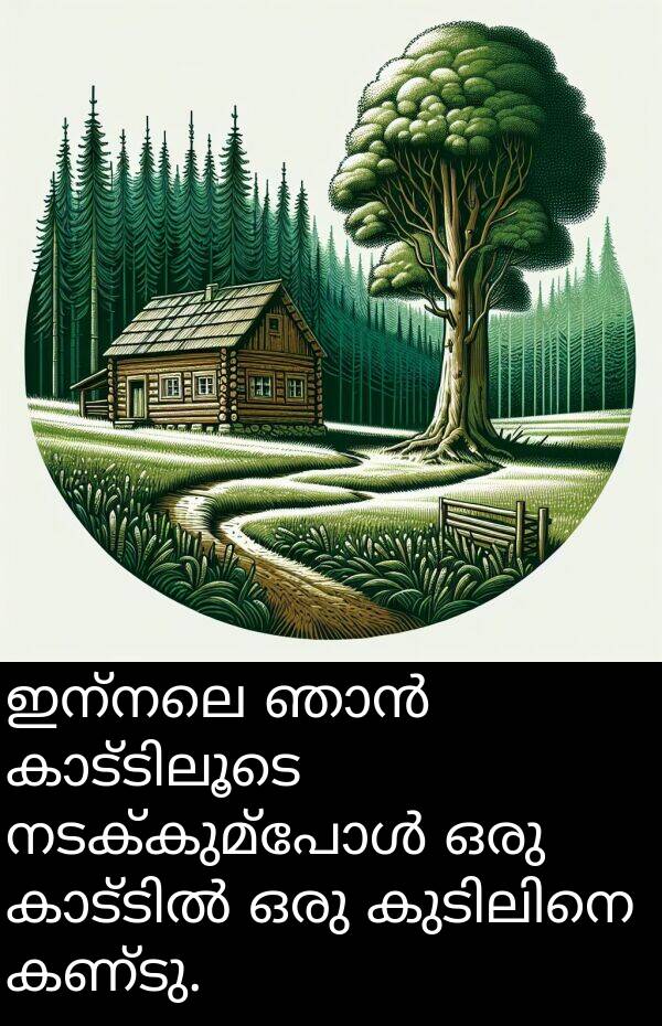 ഇന്നലെ ഞാൻ കാട്ടിലൂടെ നടക്കുമ്പോൾ ഒരു കാട്ടിൽ ഒരു കുടിലിനെ കണ്ടു.