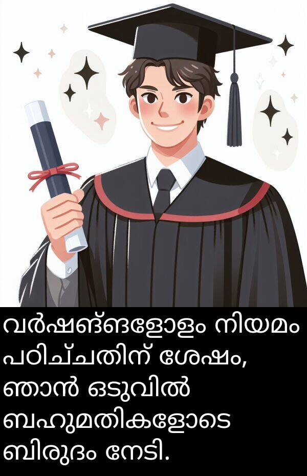 വർഷങ്ങളോളം നിയമം പഠിച്ചതിന് ശേഷം, ഞാൻ ഒടുവിൽ ബഹുമതികളോടെ ബിരുദം നേടി.