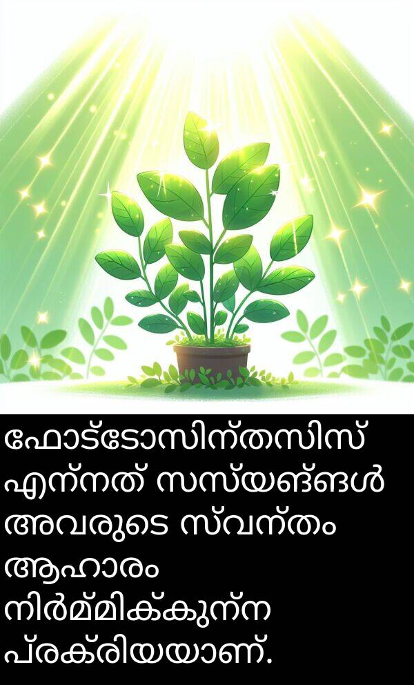 ഫോട്ടോസിന്തസിസ് എന്നത് സസ്യങ്ങൾ അവരുടെ സ്വന്തം ആഹാരം നിർമ്മിക്കുന്ന പ്രക്രിയയാണ്.
